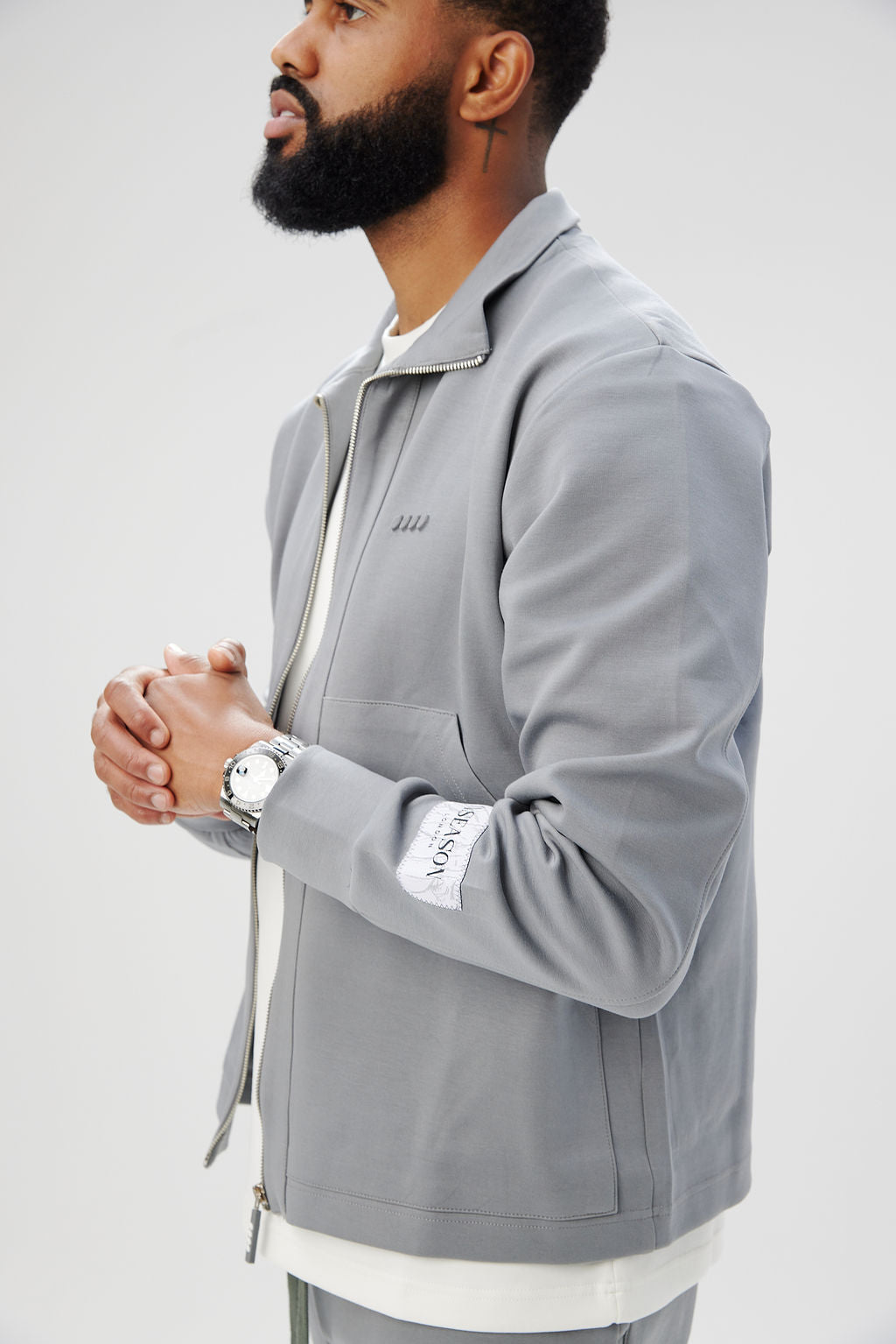 A refined take on the classic track jacket. The light grey tone provides a modern, understated aesthetic, while the structured collar and ribbed finishes offer a clean, athletic shape. Embossed branding adds subtle distinction. Versatile for layering — built for everyday wear, gym transition and travel.